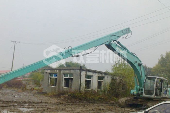 兩節(jié)伸縮臂是雙壹機械2005年自主研發(fā)的突破性產(chǎn)品,被多家同行模仿制造,從未被超越;臂長度19米,采用高噸位的三機聯(lián)動折彎設(shè)備折成U型,雙U型對接的焊接方式。