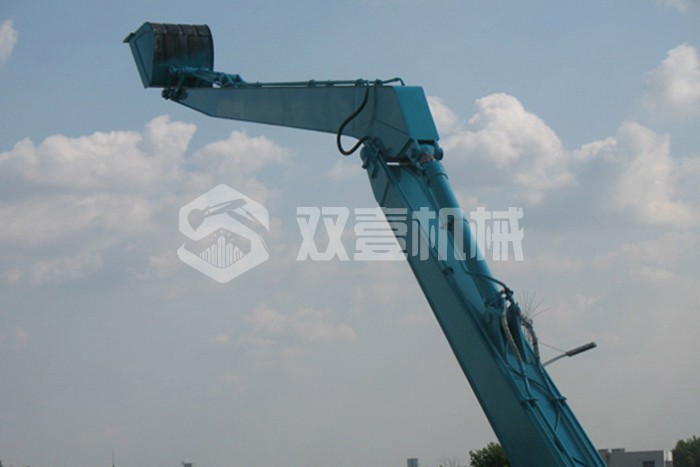 加長臂:加長臂是我們最常見,使用時間更早的大小臂加長臂,不需要伸縮缸控制。它通過大臂、小臂同時加長,配帶小挖斗,擴大機械的工作范圍。