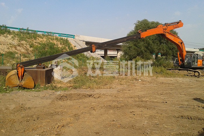 超長四節(jié)臂:總長度可達48米,臂內(nèi)可再伸出3節(jié),施工深度42.5米,配帶貝殼斗1.8立方或挖掘斗1.0立方。