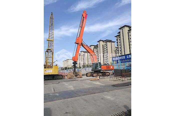 超長(zhǎng)四節(jié)臂:總長(zhǎng)度可達(dá)48米,臂內(nèi)可再伸出3節(jié),施工深度42.5米,配帶貝殼斗1.8立方或挖掘斗1.0立方。