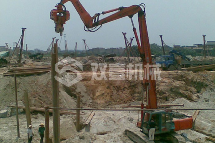 加長(zhǎng)伸縮臂:此款采用大臂加長(zhǎng),小臂三節(jié)伸縮,很適合沉井類(lèi)工程施工。其通過(guò)大臂加長(zhǎng)達(dá)到井筒要求的高度,再利用小臂向下伸縮,配帶挖掘斗進(jìn)行井下挖掘。
